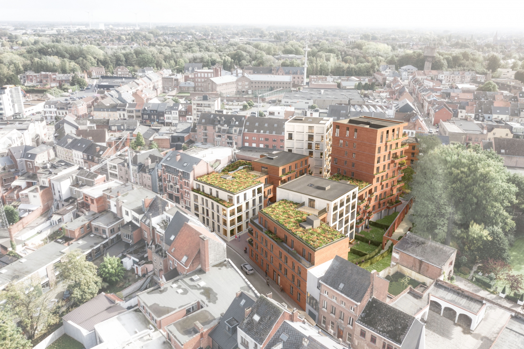 In het hart van deze centrumstad, langs de commerciële hoofdader die weldra in een groen jasje gestoken wordt, verrijst een uniek nieuwbouwproject: Hof van Saeys. Woon, winkel en werk op een bruisende plek midden in de stad, met zichten op de naastgelegen abdijtuin of het groen op de site zelf. Genieten van al dat moois doe je vanop jouw royale leefterras. Met residenties tot wel 8 verdiepingen hoog en 1.400 m² aan handelsgelijkvloers beleef je hier Dendermonde van op de eerste rij.